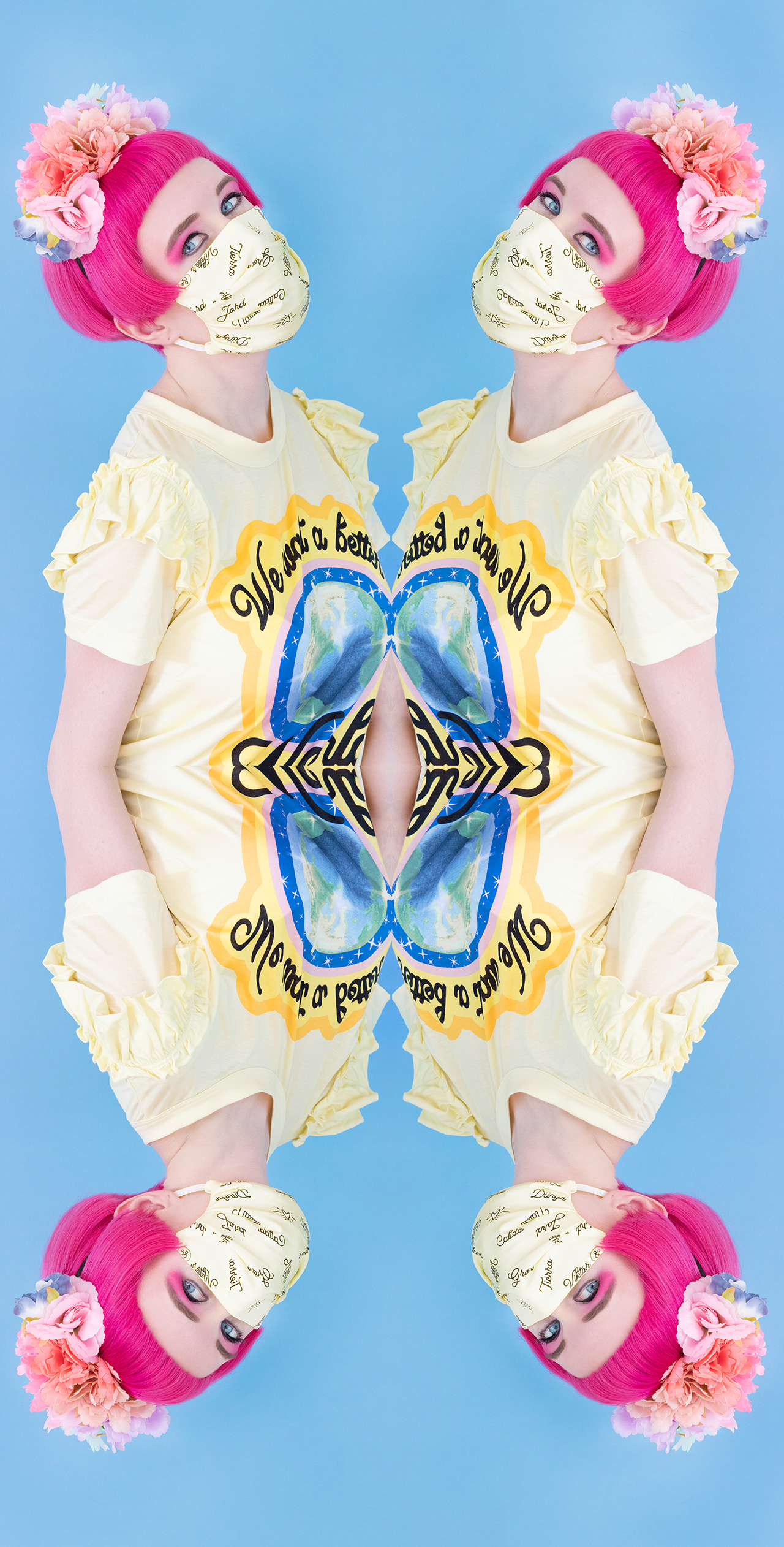 Wearing this bold statement in optimistic colours, I ask myself what a better world means for me and it’s the following: I dream of a world where people care more for each other and their environment, where egoism is less important than the understanding of being part of the human collective. A world where smiles aren’t rare, people are honest and try to live a conscious life. It might sound like utopia, but I believe it could be true if we all stand together, forget the things that divide us and unite.